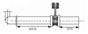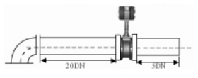 如果流量計的前(qian)端有兩個90°彎頭,要(yào)保證流量計的前(qián)直管段≥20D,後直管段(duàn)≥5D |