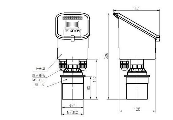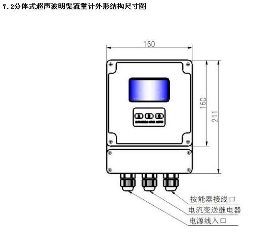 7.1一體式超(chāo)聲波明渠(qú)流量計外(wài)形結構尺(chi)寸圖