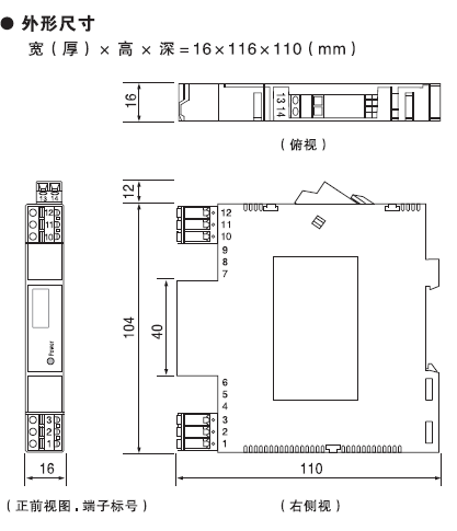 6、結構(gòu)及外形尺寸(cùn): 結構:卡裝式(shi)模塊化表芯(xīn)ABS材質機殼♋拔(bá)插式端子 外(wài)形尺寸:W16×H116×D110(mm),整機(ji)重量:約110g