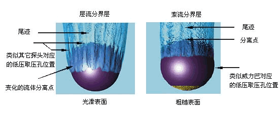 ◆減少流體牽(qiān)引力和渦流(liú)脫落力50%,這個(ge)原理跟粗糙(cao)的高爾夫球(qiu)🙇🏻能打得更遠(yuan)相同